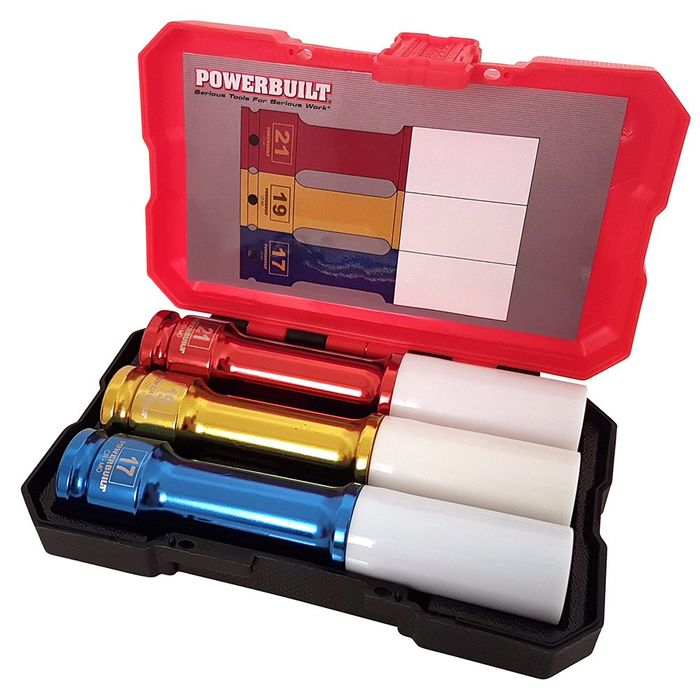 - POWERBUILT 1/2"DR 3PC SOCKETS DEEP ALUMINIUM WHEEL NUT