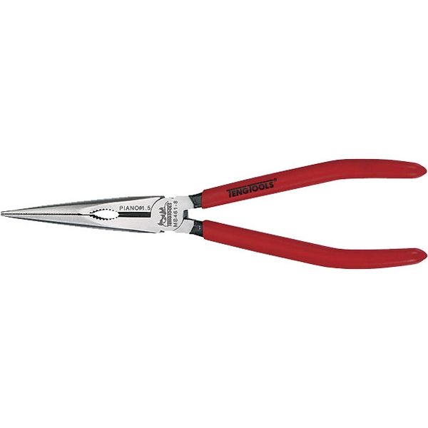 MB463-6 - 6in Mega Bite Bent Long Nose Plier High carbon, Chrome molybdenum steel. 80deg cutting edge angle. Polished head. Long 45deg angled jaws. Rubber dipped handles. DIN 5745. Handle type: Vinyl coated Length: 160mm / 6in Cutting capacity - Piano wire: 1.0mm Cutting capacity - Hard wire: 1.5mm Cutting capacity - Medium hardness wire: 2.5mm Weight: 160g