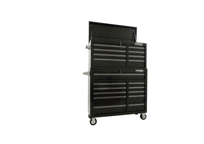 This combo contains 1 of each RMS6157 & RMS6158 only. 8 DRAWER 41" TOOL CHEST: Heavy duty side handles Internal locking system Powder coat finish Protective drawer liners Easy move, ball bearing slides on all drawers Steel thickness: 1.0mm Drawer, 1.2mm Body Overall dimensions (WxDxH): 1042mm x 449mm x 545mm Drawer dimensions (WxDxH): 3@ 560mm x 395mm x 65mm 3@ 300mm x 395mm x 65mm 1@ 560mm x 395mm x 145mm 1@ 300mm x 395mm x 145mm Maximum load limit per drawer: 39.9kg Weighs: 63kg 11 DRAWER 41" ROLLER CABINET: Internal locking system Powder coat finish Protective drawer liners Side handle Easy move, ball bearing slides on all drawers Rubber mat for protecting Cabinet top Steel thickness: 0.8mm Drawer, 1.0mm Body Features two fixed and two castor wheels with brakes 115mm/4 1/2” x 50mm/2” Overall dimensions (WxDxH): 1065mm x 460mm x 975mm Drawer dimensions (WxDxH): 3@ 560mm x 385mm x 65mm 3@ 300mm x 385mm x 65mm 2@ 560mm x 385mm x 145mm 2@ 300mm x 385mm x 145mm 1@ 935mm x 385mm x 110mm Maximum load limit per drawer: 39.9kg Weighs: 92kg