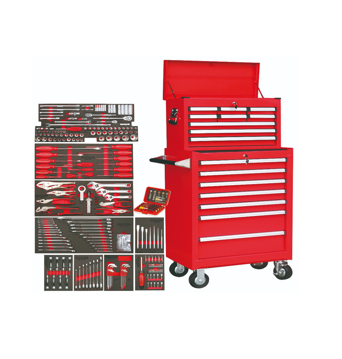 9 Drawer Tool Chest, Racing Series (RMS6153) 7 Drawer Roller Cabinet, Racing Series (RMS6156) 8pc Punch and Chisel Tray (DB0802F) 38pc Gearless Ratchet Driver and Bits Tray (SB0185F) 9pc Precision Screwdriver Tray (SC0185F) 9pc Reversible Gear Spanner Tray (WD1911HF) 94pc Socket, Driver & Accessory Tray (KBT2141F) 16pc Plier and Adjustable Wrench Tray (CGT0032F) 17pc Screwdriver Tray (SD0403F) 46pc Ring and Open End Spanner Tray (WRT1420F) 19pc Combination Ball End Hex Key Tray (WHT0055F) 36pc Security Bit Set (940668H) This kit has been carefully built for the New Zealand market. We have included many items so for a comprehensive contents listing (the nitty gritty), download the specification sheet here