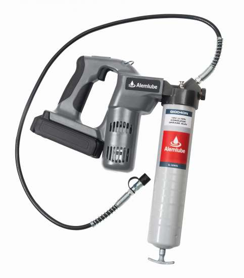The Alemlube EL Series G10040N 18V Lithium-ion cordless grease gun takes the hard work out of greasing. The G10040N can dispense up to twelve 450 gram cartridges of grease using the 3000 mAh battery before recharging or battery changeover. Weighing in at 4kg, it features a 106cm long grease gun flex, a heavy duty coupler and can work continuously for 25 minutes.The G10040N grease gun goes anywhere, securely contained in the convenient carry case, delivering high volume, high pressure trouble-free greasing.