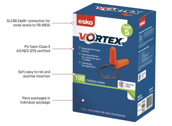 EARPLUGS VORTEX DISP ORANGE CORDED (100 PAIRS)