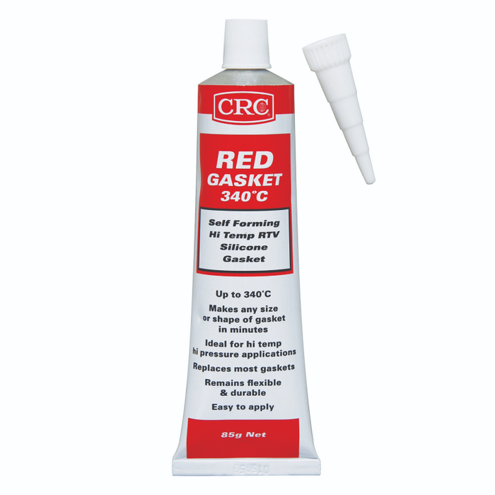 CRC Red RTV Gasket 340 is a self-forming room temperature vulcanising Silicone that replaces almost any cut gasket, felt, cork, paper, asbestos and rubber gaskets. No gasket sealers are required – the pure silicone rubber forms to any size and shape quickly.