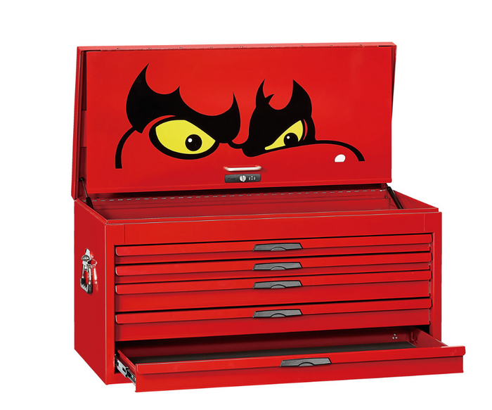 TC205NF | Teng 5-Dr. 37in 8 Series Top Box With Lid 5 full width drawers, three 75mm deep drawers and two 50mm deep drawers • Drop front with the Teng Tools logo to cover the drawers when the box is closed • Each drawer is suitable to for holding 6 TengTools TT1 plus a TTX4 and a TTX2 • Drawers have ball bearing slides for a smoother and more reliable opening and closing action. • Supplied with rubber feet to prevent it from sliding and to avoid scratching. • Use with the Teng Tools Get Organised system to build your ultimate tool kit.