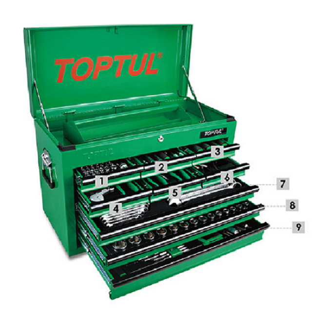 - TOPTUL TOOL KIT 186PC.9DRW.GREEN TOP BOX