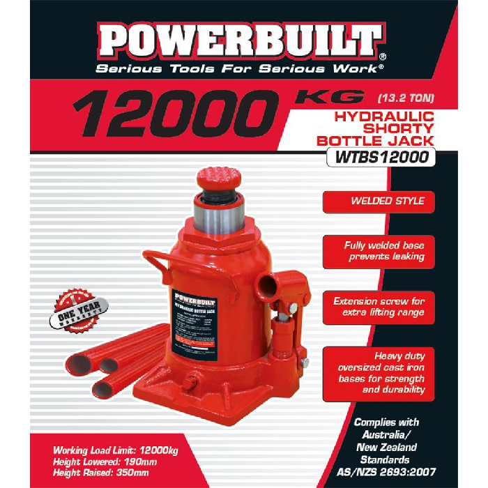 - POWERBUILT SHORTY BOTTLE JACK 13.2 TONE 12000KG 190-370